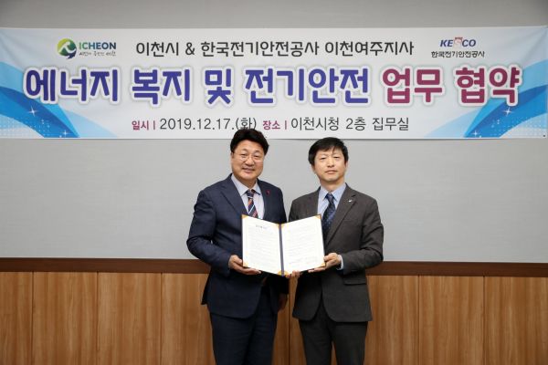 이번 협약의 주요내용은 주거시설 화재예방을 위한 기술교류, 다중이용시설 전기안전점검, 재난취약계층의 전기안전 확보, 전기안전의식 고취를 위한 홍보 활동 추진 등 이천시 에너지 복지 및 전기안전에 관한 사항이다.