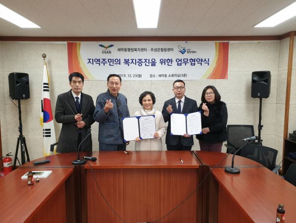 이번 업무협약을 통해 주성은 힐링센터는 건물 4층의 일부 공간을 노유자들에게 쉼터, 회의실과 같은 편의시설과 무료급식 등을 제공해 세마동 지역주민의 복지증진에 기여할 예정이다.