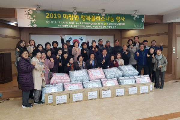 마장면 행복플러스나눔 행사는 올해 3번째로 마장면 관내 기관단체, 기업체 및 개인 등이 참여해 7백여만원의 성금을 모았으며 내년에도 따뜻하고 살기 좋은 마장면을 만들기 위해 지속적으로 추진할 예정이다.