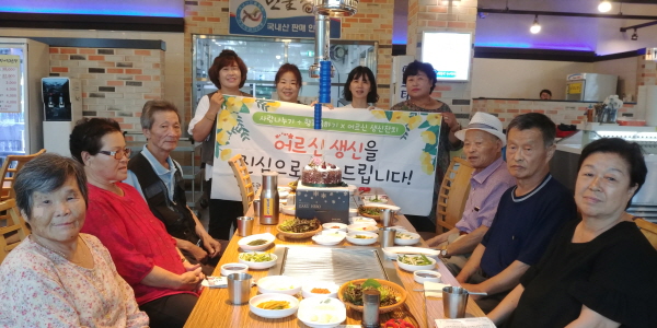 이날 생신잔치는 7월 생신을 맞은 관내 저소득 독거 어르신 중 6명을 초대해 진행했다.