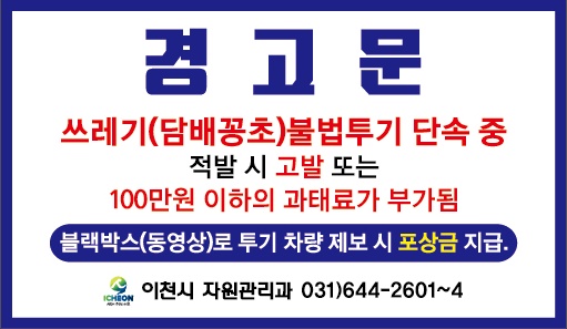 집중단속은 자원관리과 단속공무원이 2인 1조를 이루어 불법투기가 성행하는 상가지역, 도로변 등 상습 위반지역을 대상으로 진행한다.