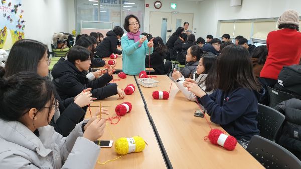 ‘청겨울’ 프로그램에서는 청소년들이 어르신에 대한 인식개선 교육을 듣고 수세미, 열쇠고리, 보조가방으로 구성된 후원꾸러미를 만들어 관내 노인복지관 2곳에 후원할 예정이며 내손2동 주민센터에 설치된 V-station에서도 수세미 만들기를 지속적으로 진행해 관내 어르신들께 후원할 예정이다.
