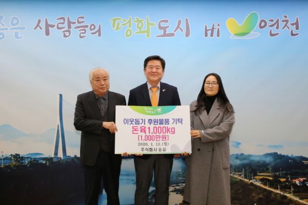 김광철 연천군수는 “지난해 아프리카돼지열병으로 경기가 침체되어 많은 어려움이 있음에도 관내 소외되고 어려운 이웃을 위한 사랑나눔을 실천하고자 후원성품을 기탁해 주신 ㈜숭실 김명규 대표님께 진심으로 감사드린다,”고 전했다.