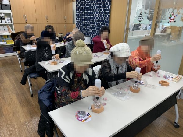 지난 15일 개강한 수업에서는 자음과 모음을 바르게 배열해 단어 만들기, 글자판을 조합해 서술어 만들기 등 기억훈련을 바탕으로 메타기억교실을 진행했으며 또한 작업치료로 조화와 하바리움 용액을 이용한 하바리움 조명을 만드는 시간을 가졌다.