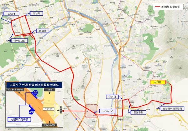 시는 오는 20일 성남하이테크밸리~모란역~고등지구~서울 강남역을 운행하는 광역버스 9400번 노선을 신설한다.