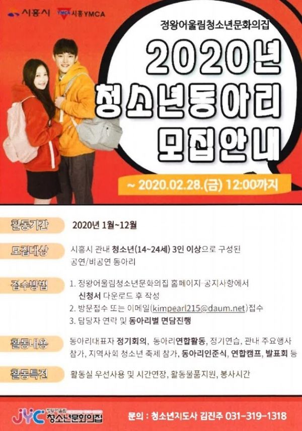 문의전화는 정왕어울림청소년문화의집으로 하면 된다.