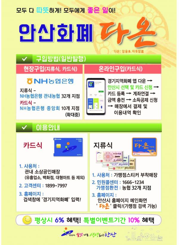 윤화섭 안산시장은 “지역 주민 모두가 골목경제를 살리려는 간절한 마음으로 적극 동참해주신 시민들께 감사하다”며 “월 50억 판매는 시작에 불과하고 다온의 발행액을 더욱 늘려 사용자와 가맹점 모두에게 고른 혜택과 편의가 제공될 수 있도록 최선을 다 하겠다”고 말했다.