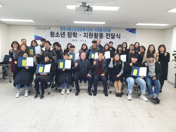 양주시 청소년상담복지센터 자원봉사자회는 관내 중학교를 졸업하고 고등학교에 진학하는 청소년을 돕고자 2007년부터 매년 장학금 지원사업을 운영한 이래 14년째 지원하고 있다.