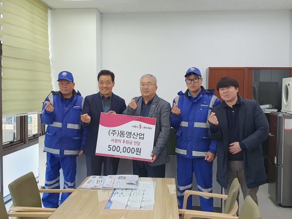 이번 전달식은 생활 폐기물 수거 지원 전문 업체인 ㈜동영산업 직원들이 민족 대명절인 설을 맞아 자체적으로 성금을 모금한 것이다.
