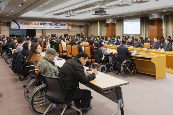 또한 발달장애인 주간활동서비스 중고령 주간보호시설 운영 맞춤형도우미 파견사업, 장애인등록증 발급 수수료 지원 등 2020년도 새롭게 달라지는 주요 신규사업을 안내했다.