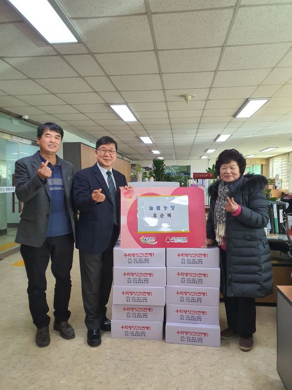 [미디어라이프(medialife)] 늘봄농장 유순복 대표는 지난 20일 금사면행정복지센터(면장 권재윤)를 방문해 떡국 떡 22상자를 전달했다.