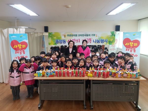 중앙동행정복지센터 박은영 동장은 “해마다 푸른유치원 아동의 따뜻한 마음을 전달받을 수 있어 너무나 뿌듯하다”며 “이런 기회를 통해 나눔에 대해 인식하고 건강한 어른이 되기 위한 밑거름이 되길 바란다”고 감사의 마음을 전했다.