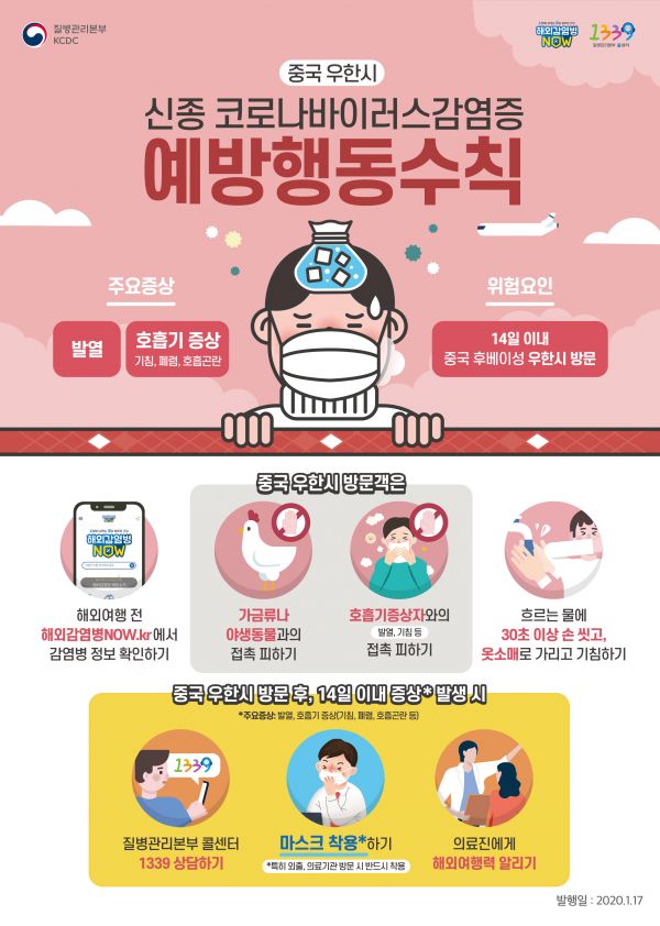 특히 중국 우한시를 방문·경유했다면 반드시 의료진에게 여행이력을 알려야 한다고 강조했다.
