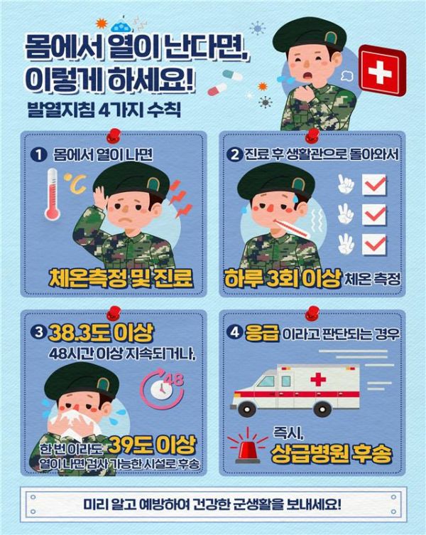 발열환자 관리지침을 제정하고 전군에 전달해 장병들의 조기 치료 기회를 놓치지 않겠다고 전했다.