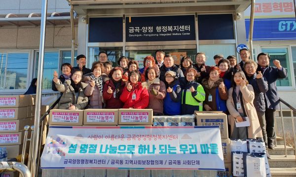 금곡동에서는 해마다 명절을 맞이해 각 기관, 단체, 지역주민들이 한마음이 되어 소외된 가정들이 명절을 따뜻하게 보낼 수 있도록 후원 물품을 전달하며 안부 인사를 전하는 행사를 개최하고 있으며 올해도 지역사회보장협의체 위원, 주민자치위원, 생활개선회, 금곡동대 등 많은 분이 참여해 독거노인, 질병이 있는 중·장년 1인 가구, 중증 장애인 등 70세대를 방문했다.