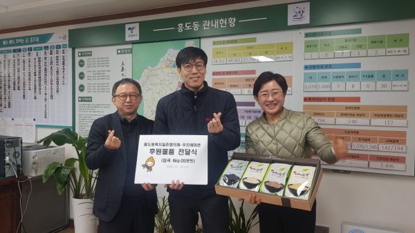 후원 물품을 기탁 받은 김덕수 흥도동장은 “이웃과 소외계층에 대한 지속적인 관심과 배려에 감사하며 후원된 물품은 지역의 저소득 가정에 전달해 더불어 사는 따뜻한 세상을 만드는 데 더욱 노력할 것”이라며 감사의 마음을 전했다.