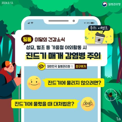 진드기 매개 감염병은 추수 및 등산, 캠핑 등 야외 활동이 증가하는 가을철에 집중 발생합니다.