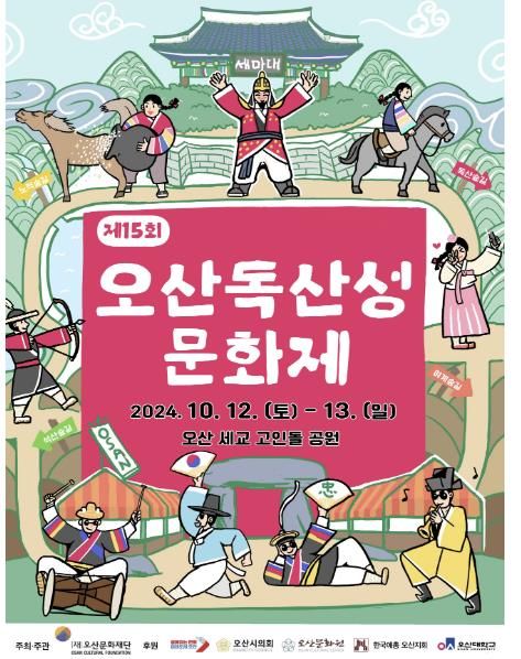 독산성의 충·효의 정신과 오산의 유구한 전통을 계승하고, 오산의 과거와 현재를 아우르는 오산역사관광축제로 추진하고자하는 '제15회 오산독산성문화제'는 지역 문화예술자원을 활용한 콘텐츠 개발과 더불어 시민들이 오산 역사에 대한 자긍심을 가질 수 있는 시민 참여형 프로그램 및 다채로운 유·무료 체험 프로그램이 펼쳐질 예정이다.