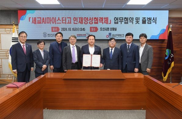 미디어라이프 중부신문 이종인 기자 | 오산시는 16일 오산시청 상황실에서 세교AI마이스터고 인재양성협력체 구성을 위해 오산대학교와 한신대학교와 업무협약을 체결했다.