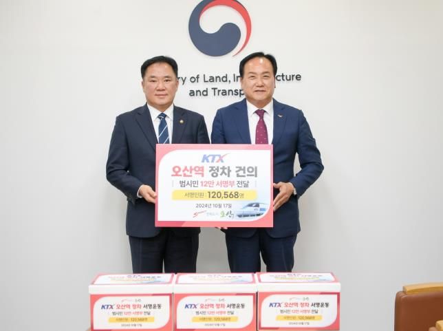 특히 수원발KTX 오산역 정차와 관련해서는 지난해 말부터 올해 초까지 3개월간 추진한 ‘KTX 오산역 정차건의 범시민 서명운동’에 참여한 12만568명의 서명부를 국토부에 전달했다.