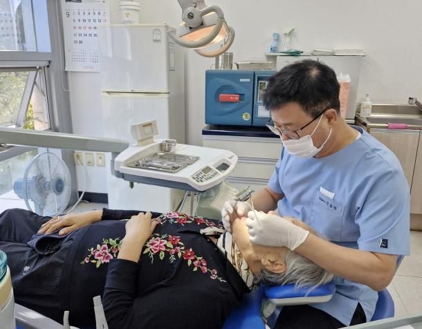 구강보건교육에서는 구강질환과 만성질환의 상관관계에 대해 설명하며 노년기 구강관리의 중요성을 강조하고 개인별 구강검진 및 불소도포를 실시하며 주기적인 구강검진을 받을 것을 안내했다.