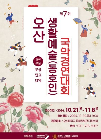 미디어라이프 중부신문 이종인 기자 | 오산시는 관내 국악문화 활성화를 위해 (사)한국국악협회 오산지부 주관으로 추진하는'제7회 오산 생활예술(동호인) 국악경연대회'참가자를 11월 8일까지 모집한다.