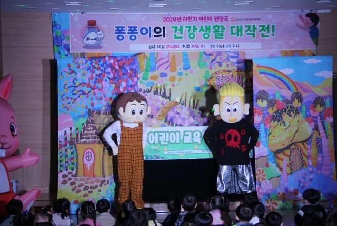 ‘퐁퐁이와 건강생활 대작전’은 균형잡힌 식단을 골고루 섭취해야 하는 이유와 깨끗하게 손씻기에 대한 내용을 주제로 진행되었으며, 어린이의 눈높이에 맞는 율동, 마술쇼 및 O,X퀴즈를 곁들여 흥미를 끌어올렸다.