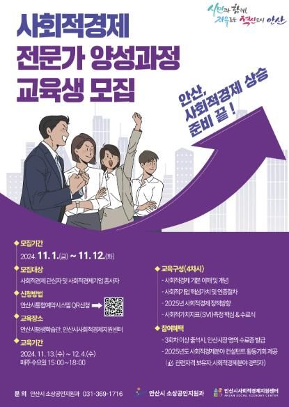 미디어라이프 중부신문 이종인 기자 | 안산시는 오는 12일까지 사회적경제 전문 역량 강화를 위한 ‘사회적경제 전문가 양성과정’ 교육생을 모집한다고 6일 밝혔다.
