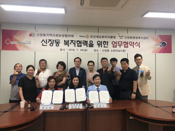 정길순 신장동행정복지센터 동장은 “신장동을 위해 협약을 체결한 오산세교로타리클럽에 감사의 마음을 전하였으며, 앞으로도 주변의 어려운 이웃에 관심을 갖고 있는 단체, 개인, 기업 등과 지속적인 후원 협약을 맺고, 복지사각지대에 있는 어려운 이웃과 적극적 매칭을 통해 공급자 중심의 복지에서 수요자 중심의 복지가 자리 잡도록 노력하겠다.”고 말했다.