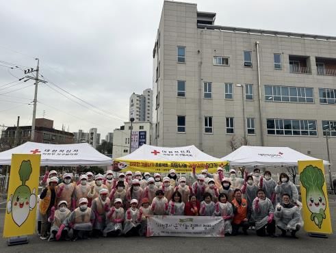 대한적십자사 의정부지구협의회 봉사원 80여 명이 1천500kg 가량의 김장김치를 담가 의정부시 희망풍차 결연세대(독거노인 등 취약계층) 147가구에 전달했다.