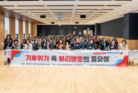 미디어라이프 중부신문 이종인 기자 | 오산시는 탄소중립 녹색성장 시민교육의 일환으로 ‘분리배출로 만드는 녹색지구’의 주제로 10일 오산오색문화체육센터에서 경기도여성단체협의회 오산시지회 회원 100여 명을 대상으로 교육을 실시했다,