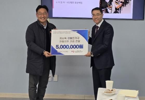 미디어라이프 중부신문 이종인 기자 | 지난 15일, 사단법인 오산예일은 오산남부종합사회복지관에게 지역 내 저소득 장애인 가구의 자립지원을 위한 후원금 500만원을 기탁했다. 후원금은 오산남부종합사회복지관에서 진행하는 “저소득 장애인 가구 자립지원 사업”의 기금으로 사용될 예정이다.