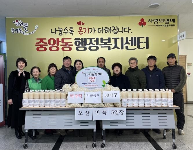 미디어라이프 중부신문 이종인 기자 | 오산시 중앙동은 지난 23일 오산민속 5일장이 관내 어려운 이웃들을 위해 떡국떡과 사골육수를 지원하며 따뜻한 나눔을 실천했다고 전했다.