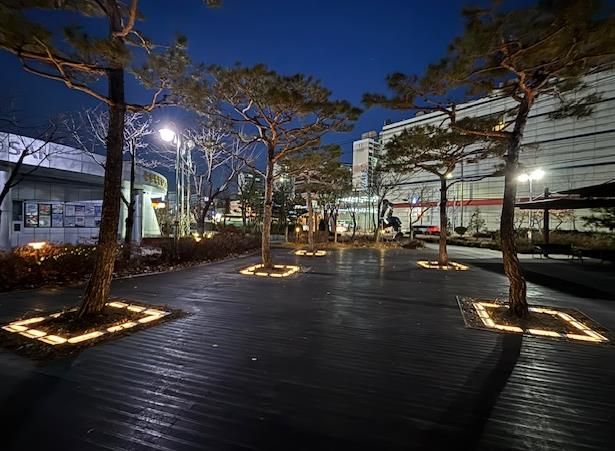 중앙동 행정복지센터는 평소 주민들의 왕래가 잦은 곳이나, 야간에는 별다른 경관 조명 시설이 없어서 다소 삭막했다.