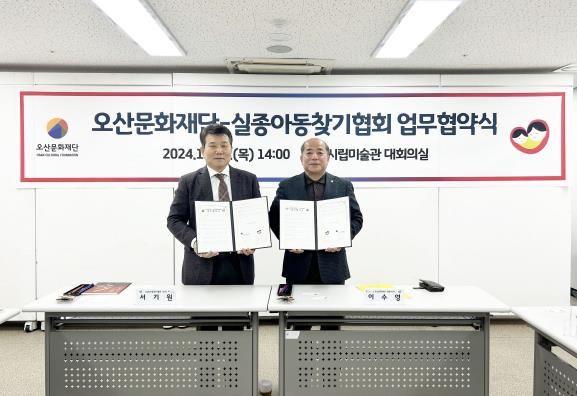 오산문화재단에서 열린 이날 업무협약식에는 이수영 오산문화재단 대표이사, 서기원 실종아동찾기협회 대표 및 관계자들이 참석한 가운데 진행됐다.