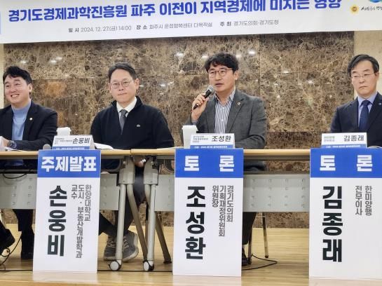 미디어라이프 중부신문 이종인 기자 | 경기도의회 기획재정위원회 조성환 위원장(더불어민주당, 파주2)은 12월 27일 파주 운정행복센터에서 열린 ‘2024년 하반기 경기도-경기교육 정책토론회’에서 “경기도경제과학진흥원(경과원)의 파주 이전은 경기 북부를 수도권 변방에서 대한민국 성장 동력의 중심으로 탈바꿈시키는 대전환점이 될 것”이라고 밝혔다.