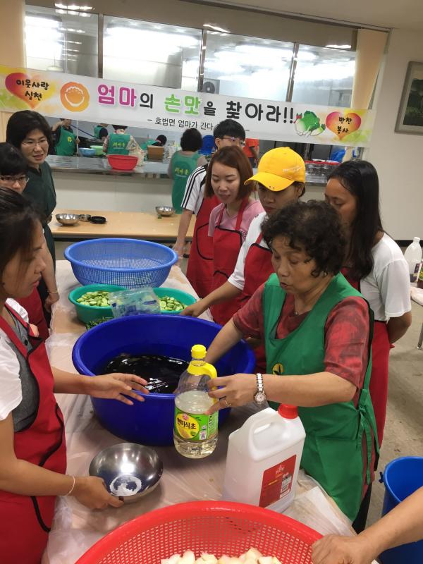 이날 행사에는 중국, 캄보디아, 베트남, 필리핀 출신의 다문화가족 14명이 참석하여 오이소박이와 양파장아찌를 만들었다.