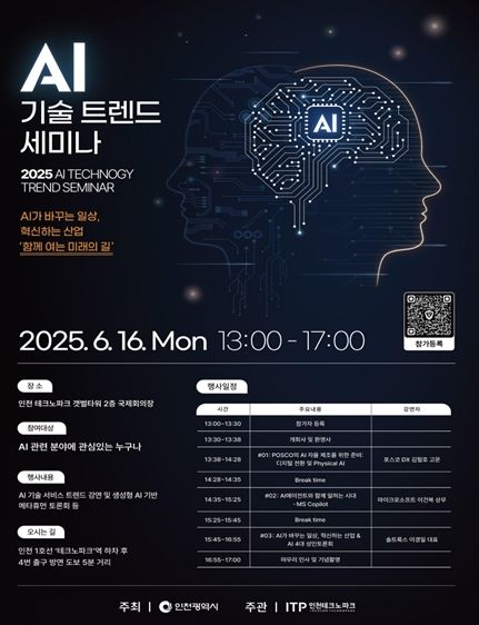 미디어라이프 중부신문 기자 | 인천광역시는 오는 6월 16일 송도 갯벌타워에서 ‘2025 인공지능(AI) 기술 트렌드 세미나’를 개최한다고 밝혔다.