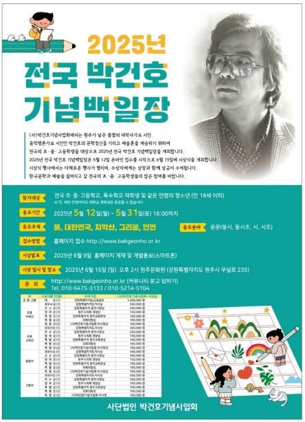 이번 시상식은 수상자와 가족, 문학 관계자들이 함께 모여 박건호 선생의 문학정신을 되새기고, 청소년들의 문학적 가능성을 응원하는 뜻깊은 자리가 될 것으로 기대된다.