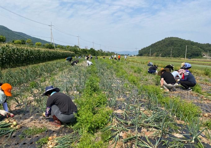 군동면 고령농 김화식 농가는 “군동면과 강진군청 세무회계과, 인구정책과 직원들이 도와줘 적기에 양파를 수확할 수 있었다.