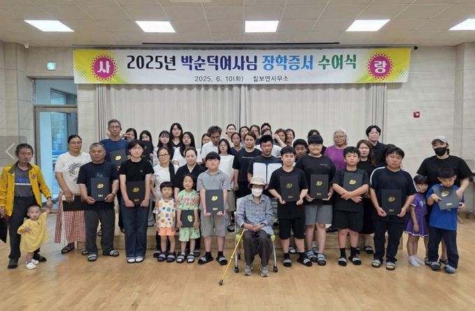 이날 칠보면 행복이음센터 대강당에서 열린 ‘2025년 박순덕 여사 장학 증서 수여식’에서 박 여사는 울산에서 직접 고향을 찾아 지역 학생 28명에게 총 1220만원의 장학금을 전달했다.