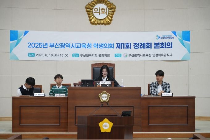미디어라이프 중부신문 기자 | 부산광역시교육청은 10일 오후 3시 부산진구의회 본회의장에서 2025 학생의회 초중고 학생의원 50여 명이 참석한 가운데 ‘2025년 학생의회 제1회 정례회’를 개최했다.