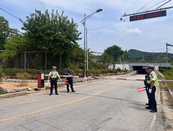 침수 취약 시설인 하상도로 현장에서 도로 유실 시 차량 통제 및 우회 도로 확보 훈련을 실시하고, 자동 차단시설 정상 작동 여부를 점검했다.