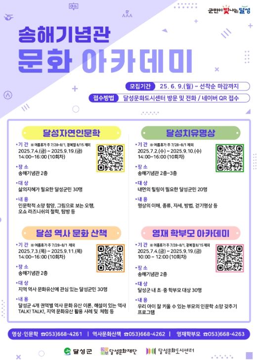 프로그램은 7월부터 시작되며, 달성군민을 대상으로 무료로 진행된다.