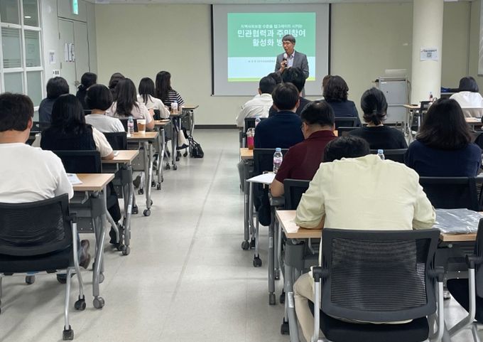 교육 강의는 대구사이버대학교 사회복지학과 채현탁 교수가 맡아, ‘민⸱관 협력체계 구축’과 ‘지역주민 참여 확대’를 주제로 진행됐다. 특히, 다양한 지역 주체가 계획 수립부터 실행까지 함께 참여하는 거버넌스 구조의 중요성, 그리고 이를 실현하기 위한 구체적 전략과 우수사례를 공유해 참석자들의 관심을 끌었다.