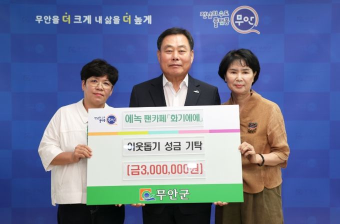 미디어라이프 중부신문 기자 | 전남 무안군은 지난 10일 가수 에녹의 공식 팬카페 ‘화기에에’로부터 지역 저소득층 지원을 위한 기부금 300만 원을 기탁받았다.