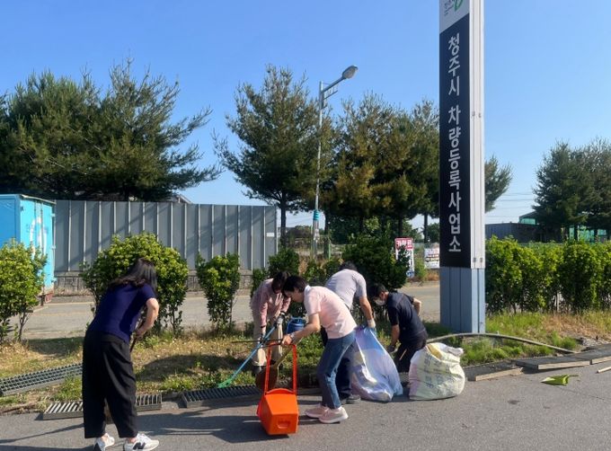 이번 활동은 일 평균 약 500명이 방문하는 차량등록사업소의 미관을 개선하고 여름철 호우 시에도 방문객들이 불편을 겪지 않도록 사전에 조치하기 위해 마련됐다.