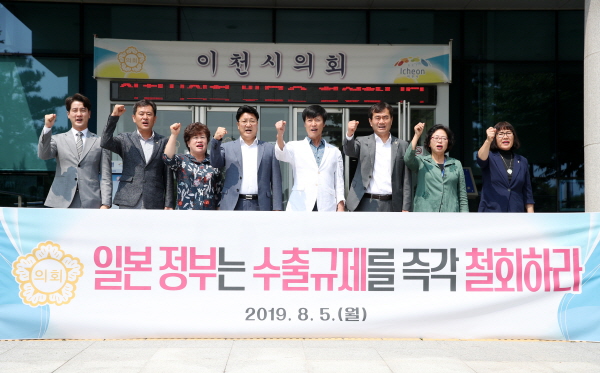 이천시의회는 일본 정부가 징용 피해자 배상판결에 대한 보복 조치로 우리나라에 대하여 반도체·디스플레이 핵심소재 수출규제 조치와 일본의 수출 우대 대상인 ‘화이트리스트’에서 한국을 배제한 것에 대하여 우려와 유감 표명 및 수출규제 철회를 요구하는 내용이었다.