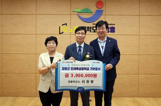 미디어라이프 중부신문 이건영 기자 | 이천영 장흥군 부군수는 6월 30일 오전 열린 이임식에서 인재육성기금 3백만원을 기탁했다.