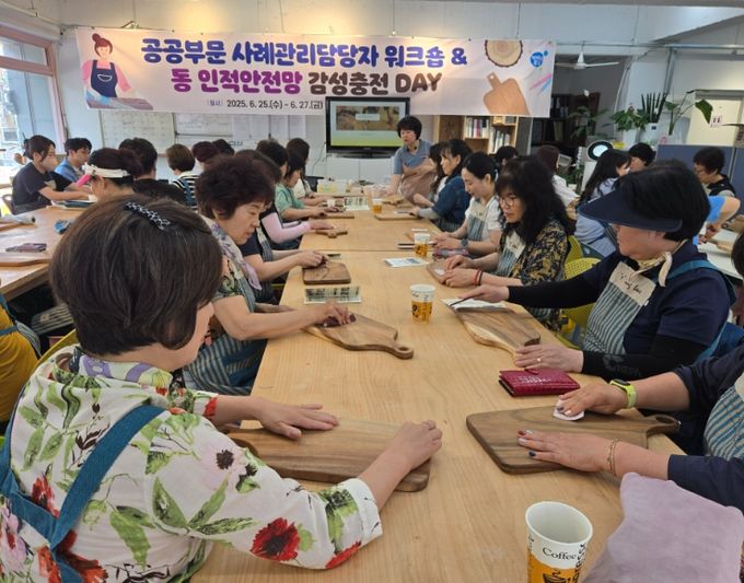 이번 행사는 동 인적안전망의 핵심 자원인 명예사회복지공무원의 노고를 격려하고 소통을 강화하기 위해 마련됐으며, 각 동의 명예사회복지공무원들이 한자리에 모여 ‘나만의 원목 도마’를 만들며 담소를 나누고 소회를 공유하는 시간을 가졌다.